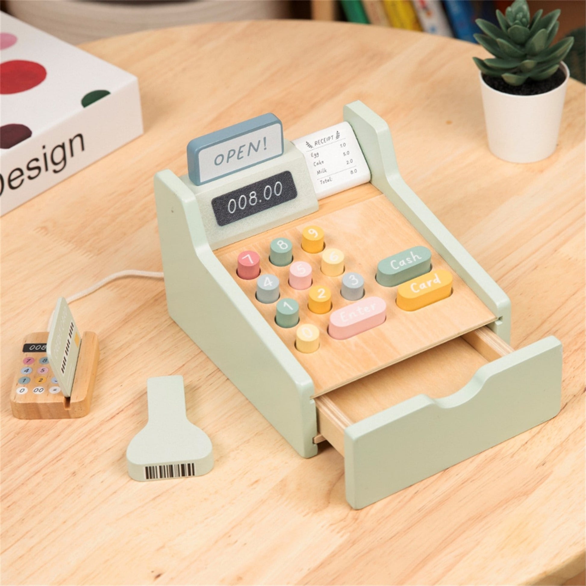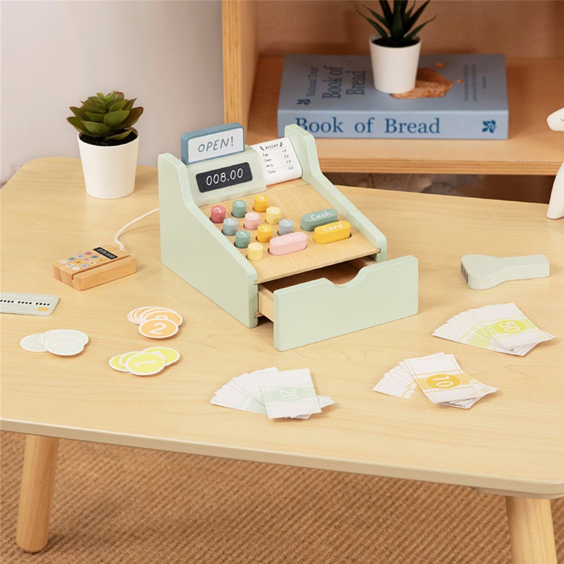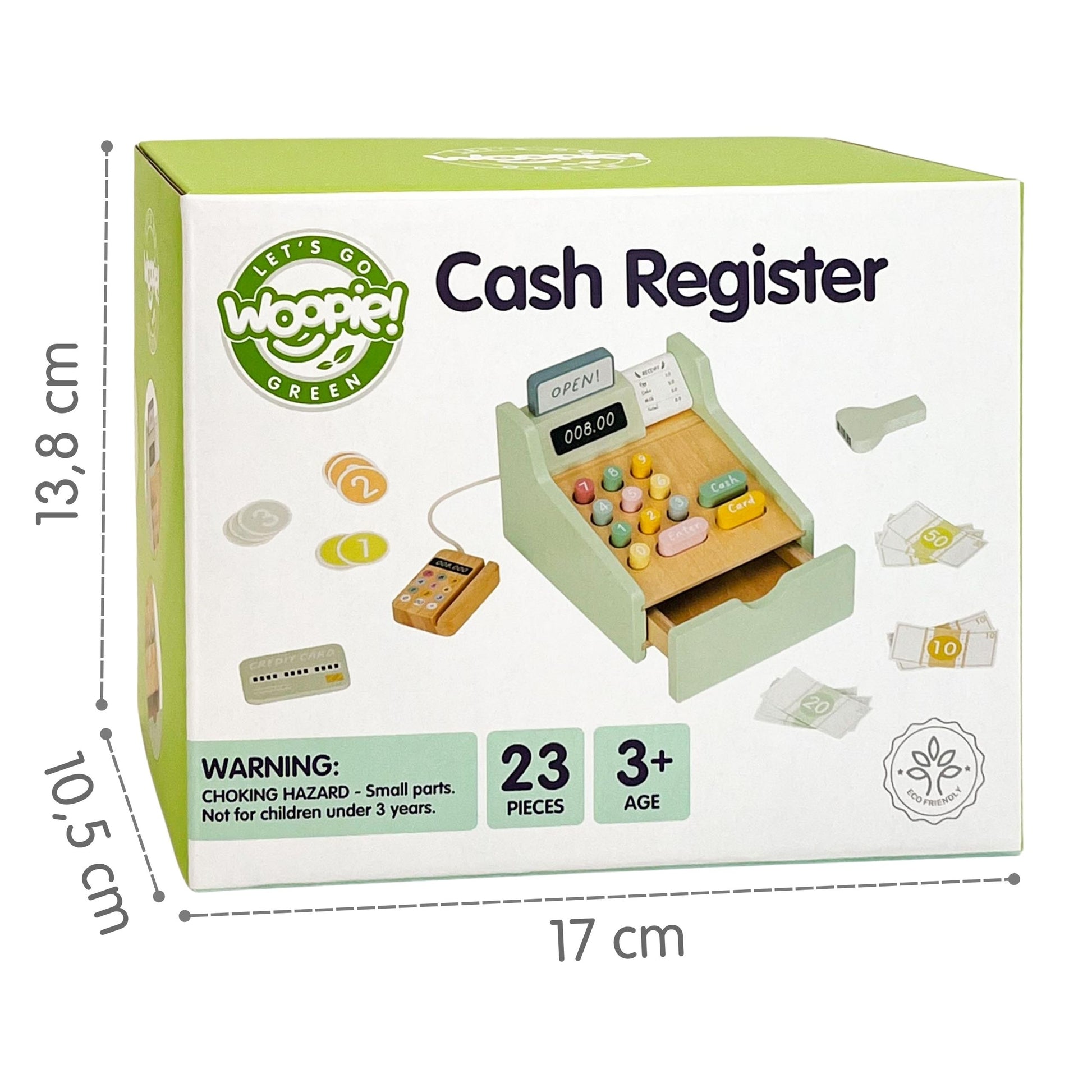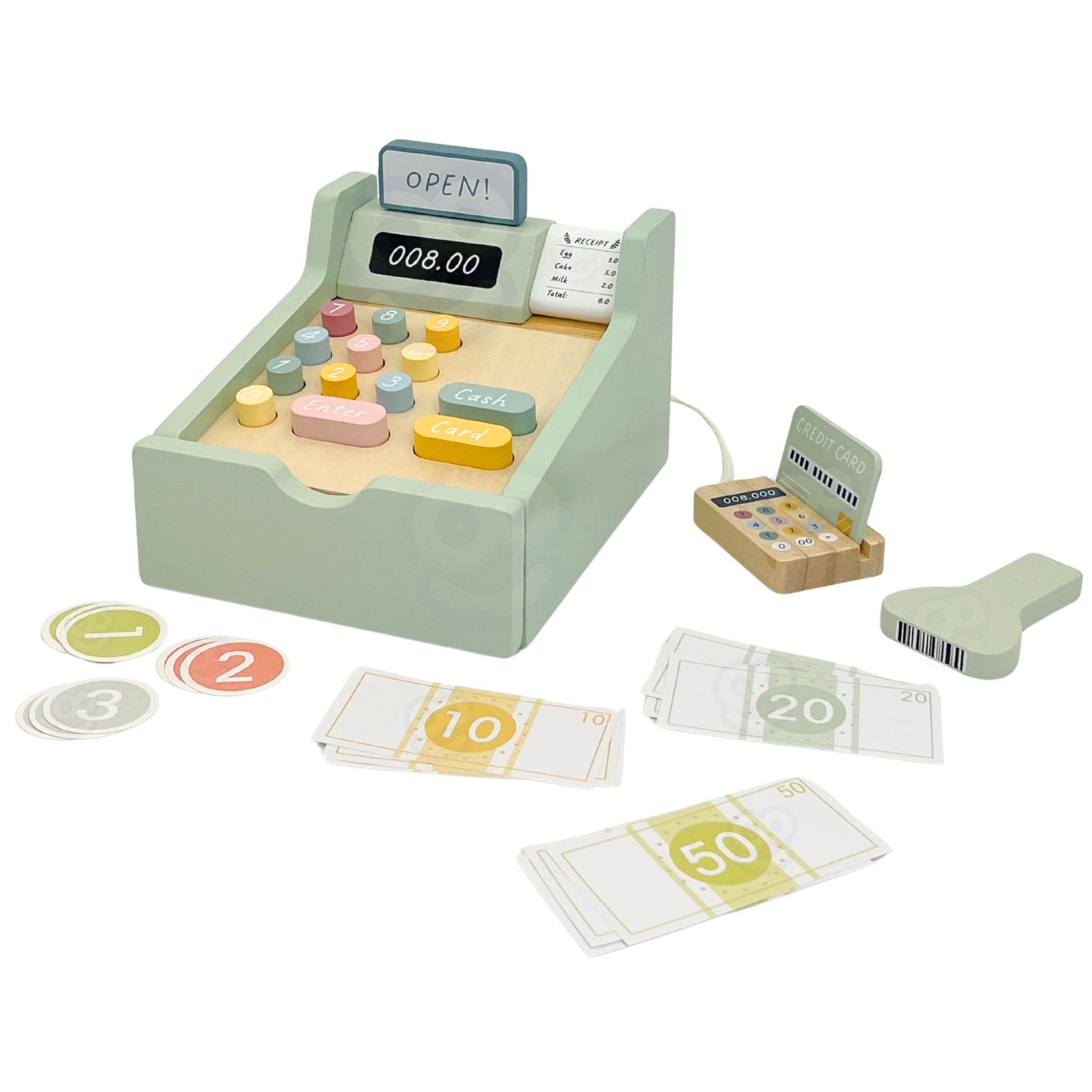 Kasa Sklepowa | Drewniana Kasa Fiskalna z Akcesoriami i Kartą | WOOPIE GREEN FSC