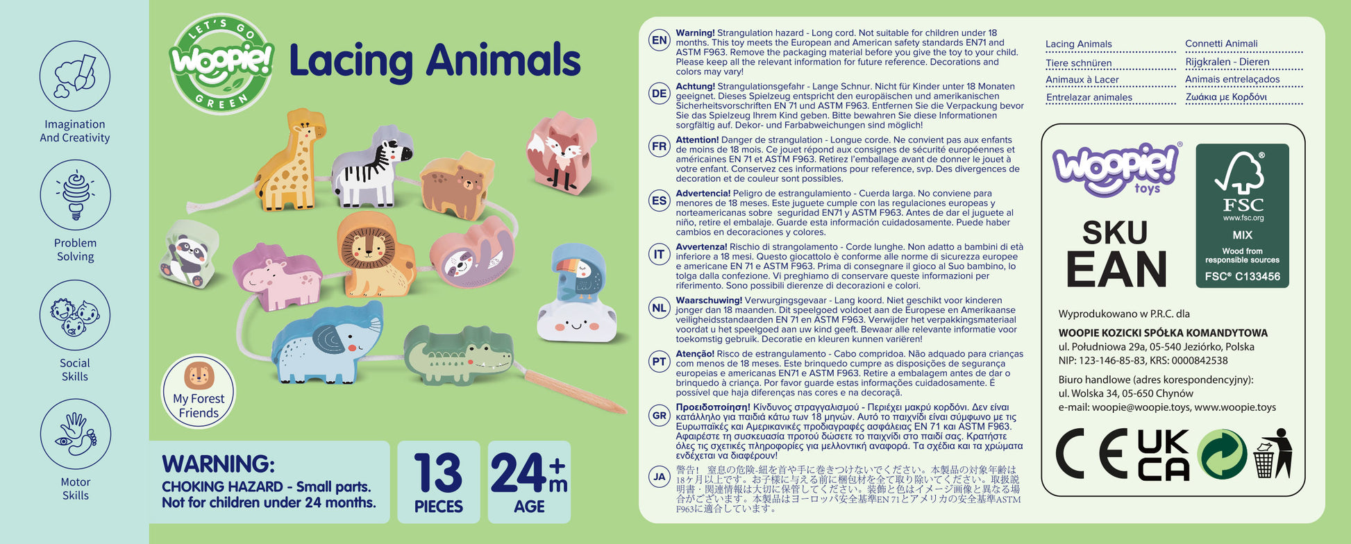 Opowieści na Sznureczku | Drewniana Nawlekanka Zwierzęta ZOO | WOOPIE GREEN