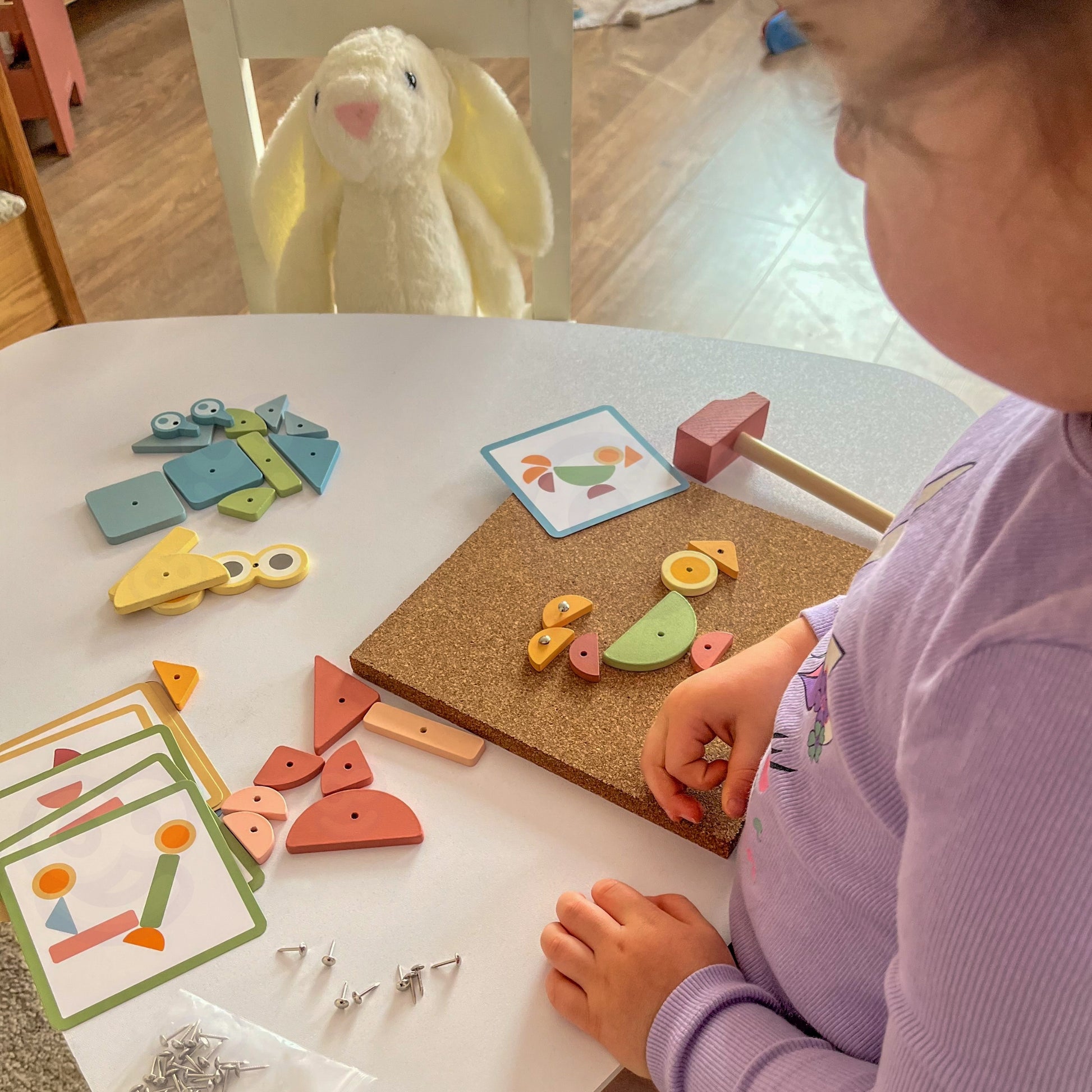 Kreatywna Mozaika | Drewniana Przybijanka z Młotkiem | WOOPIE GREEN