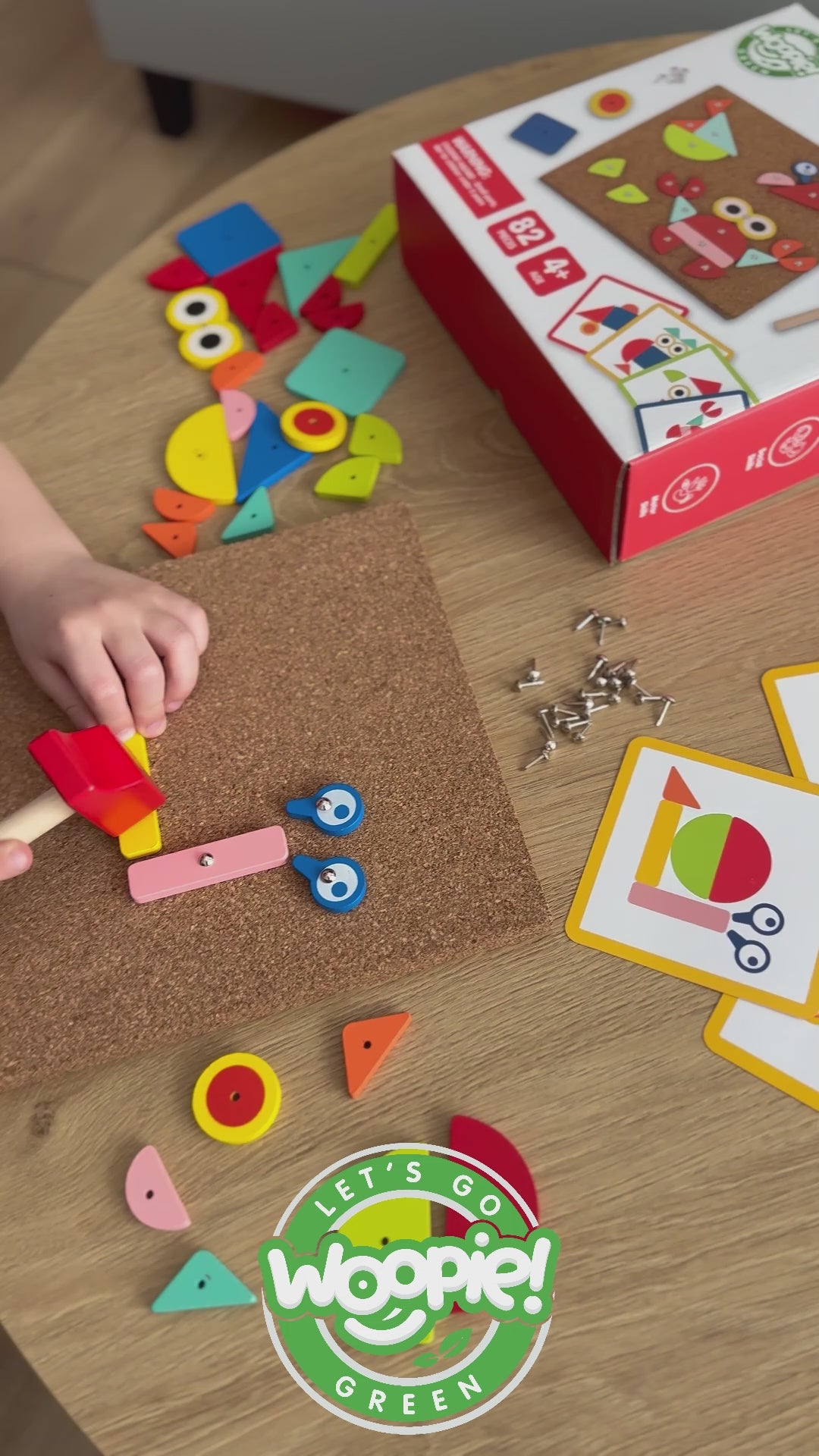 Rozwiń kreatywność i motorykę, tworząc obrazki z drewna! Przybijanka Korkowa od marki WOOPIE z serii GREEN to idealna zabawka edukacyjna dla małego konstruktora. Za pomocą młoteczka i pinezek dzieci przybijają kolorowe klocki do korkowej tablicy, tworząc obrazki zwierząt, roślin, czy pojazdów.