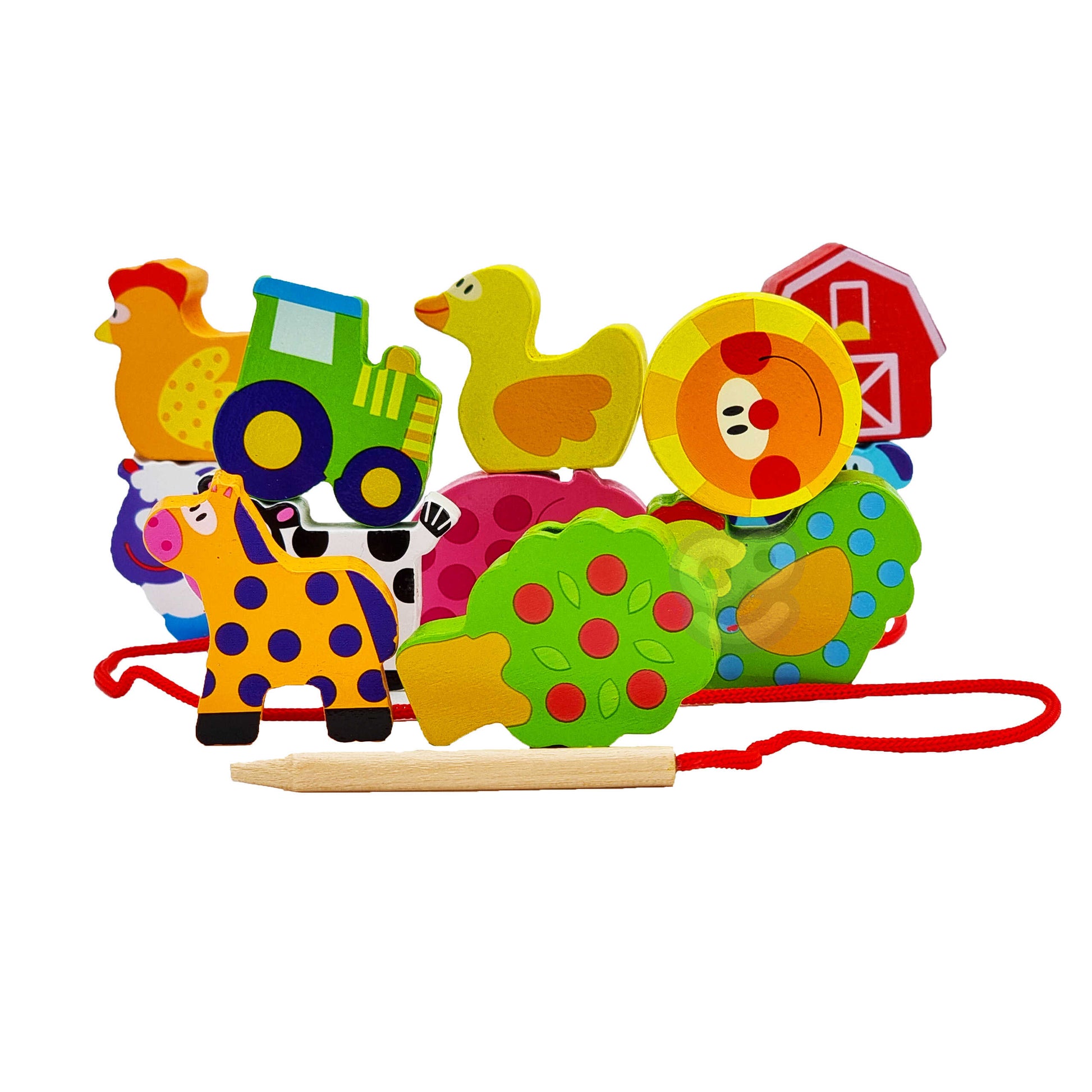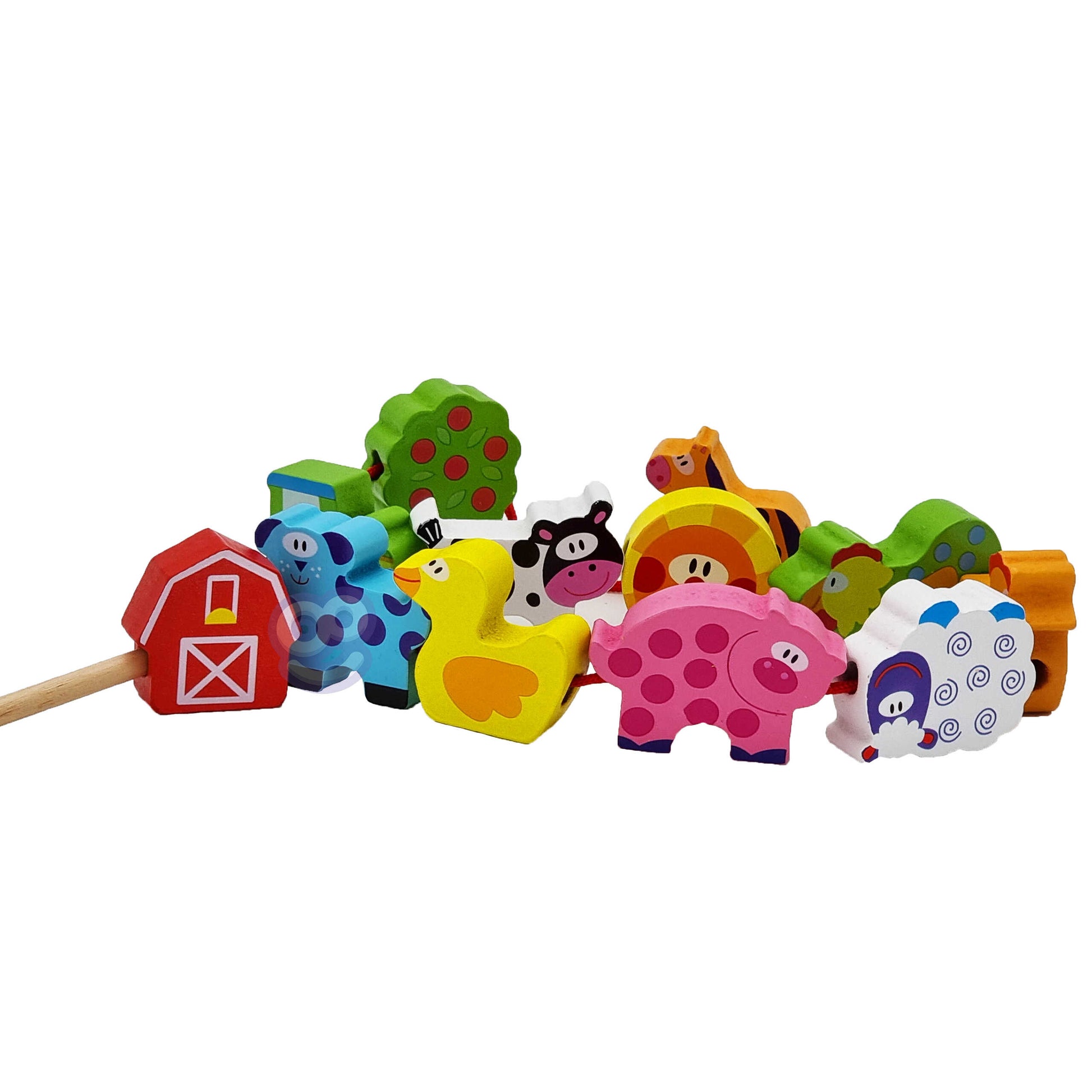 Drewniana Nawlekanka Farma: Motoryka i Koncentracja (13 elementów)