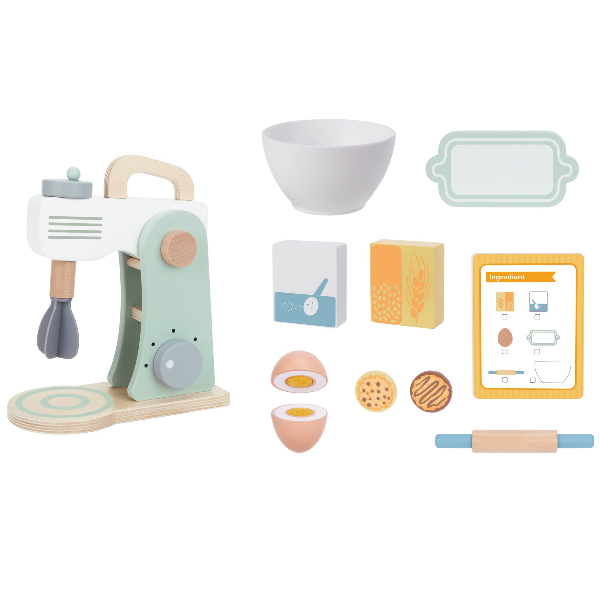 Zestaw składa się z 11 bezpiecznych elementów, wykonanych z trwałego drewna. Zabawka posiada ruchome funkcje imitujące prawdziwy robot kuchenny, co rozwija zdolności manualne** i koordynację ręka-oko. Pastelowe kolory dodają uroku każdej dziecięcej kuchni, a zaokrąglone elementy gwarantują bezpieczeństwo.