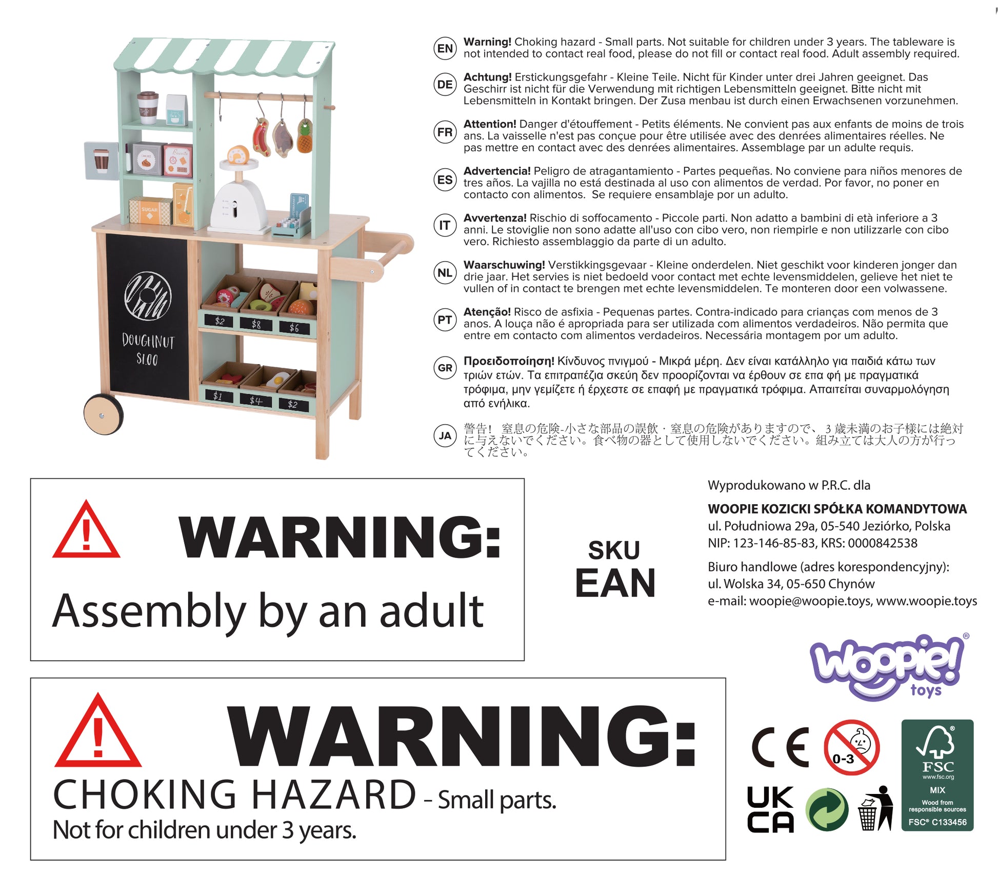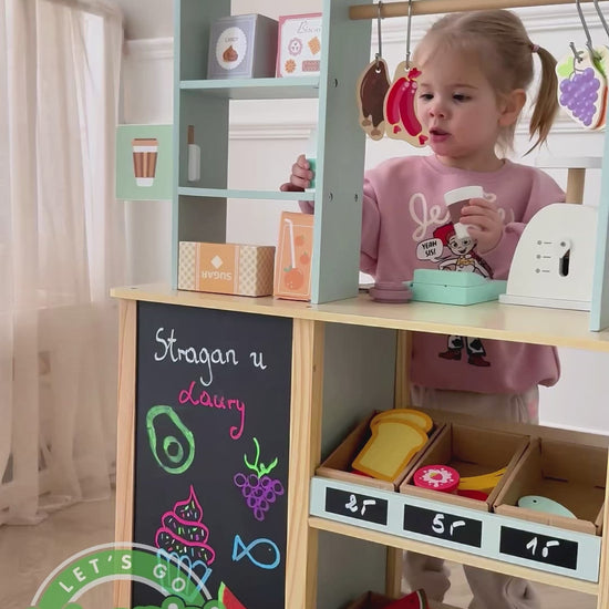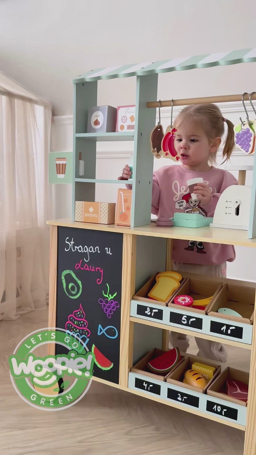 Witaj w świecie zabawy i zakupów! Drewniany Sklep Spożywczy od marki WOOPIE GREEN to duży, kolorowy stragan, który pozwala dzieciom na interaktywną zabawę w sklep i rozwijanie ważnych umiejętności życiowych. Ten wielofunkcyjny zestaw zapewni mnóstwo godzin kreatywnej i edukacyjnej zabawy – idealnej do odgrywania ról.