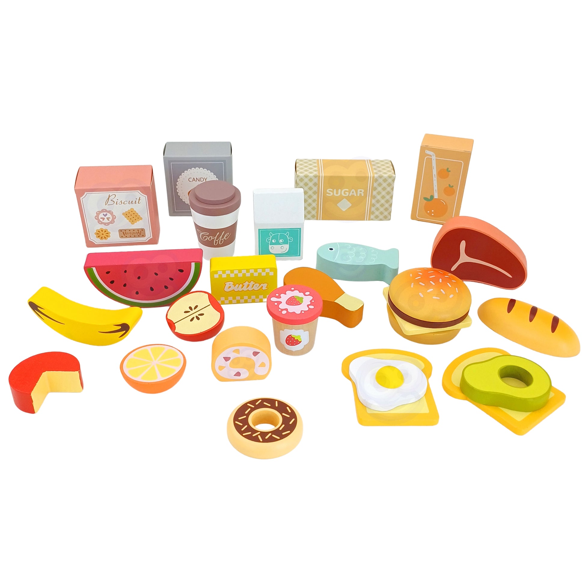 W zestawie znajdziesz aż 73 elementy, w tym wagę, produkty spożywcze, czytnik kart i kredową tablicę, na której możesz napisać, co dziś w promocji! Zestaw wykonany jest z bezpiecznego drewna i pomalowany nietoksycznymi farbami na bazie wody, idealnie wpisując się w serię WOOPIE GREEN.