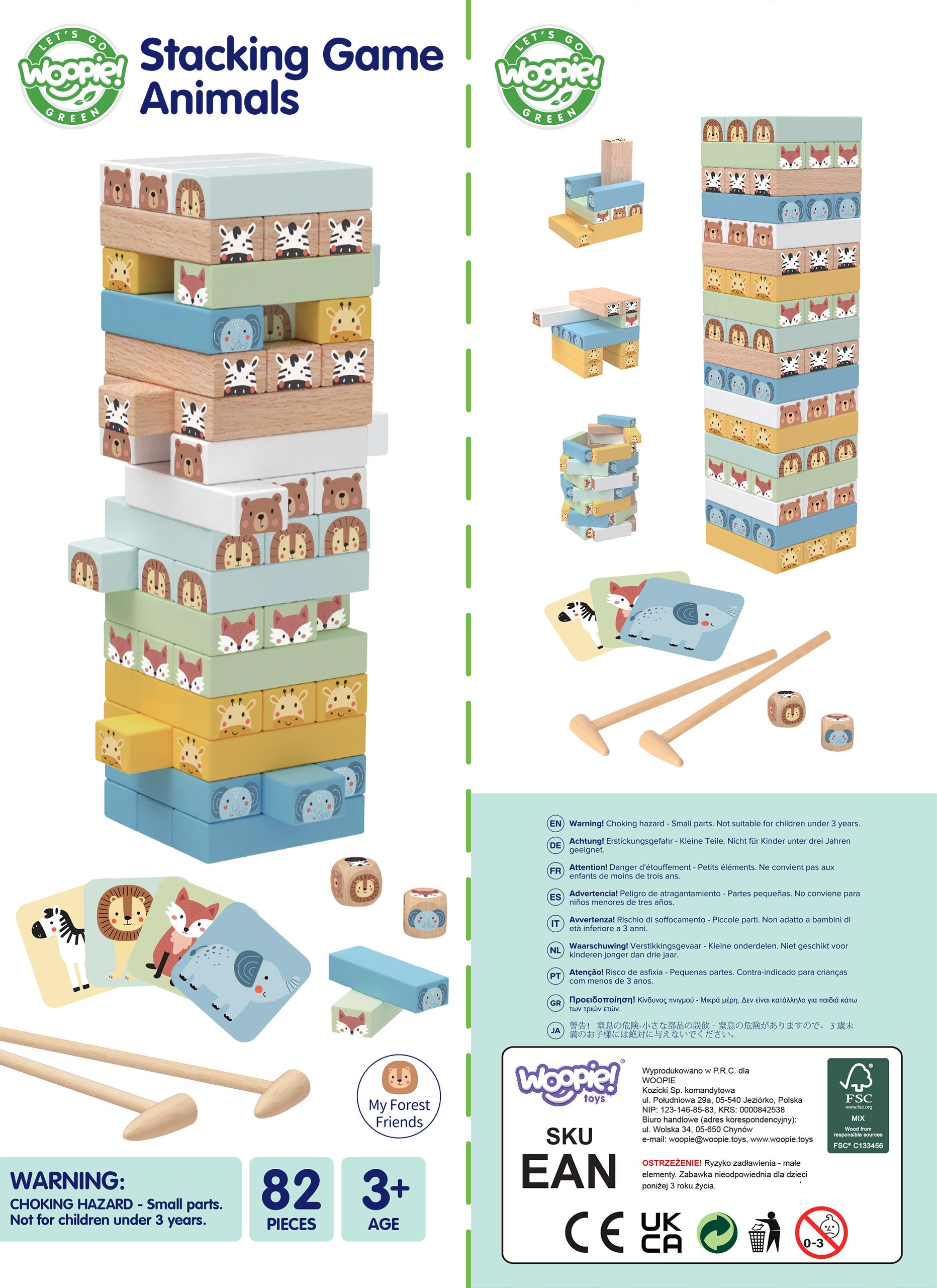 Chwiejąca Wieża | Drewniana Gra Zręcznościowa ze Zwierzątkami | WOOPIE GREEN