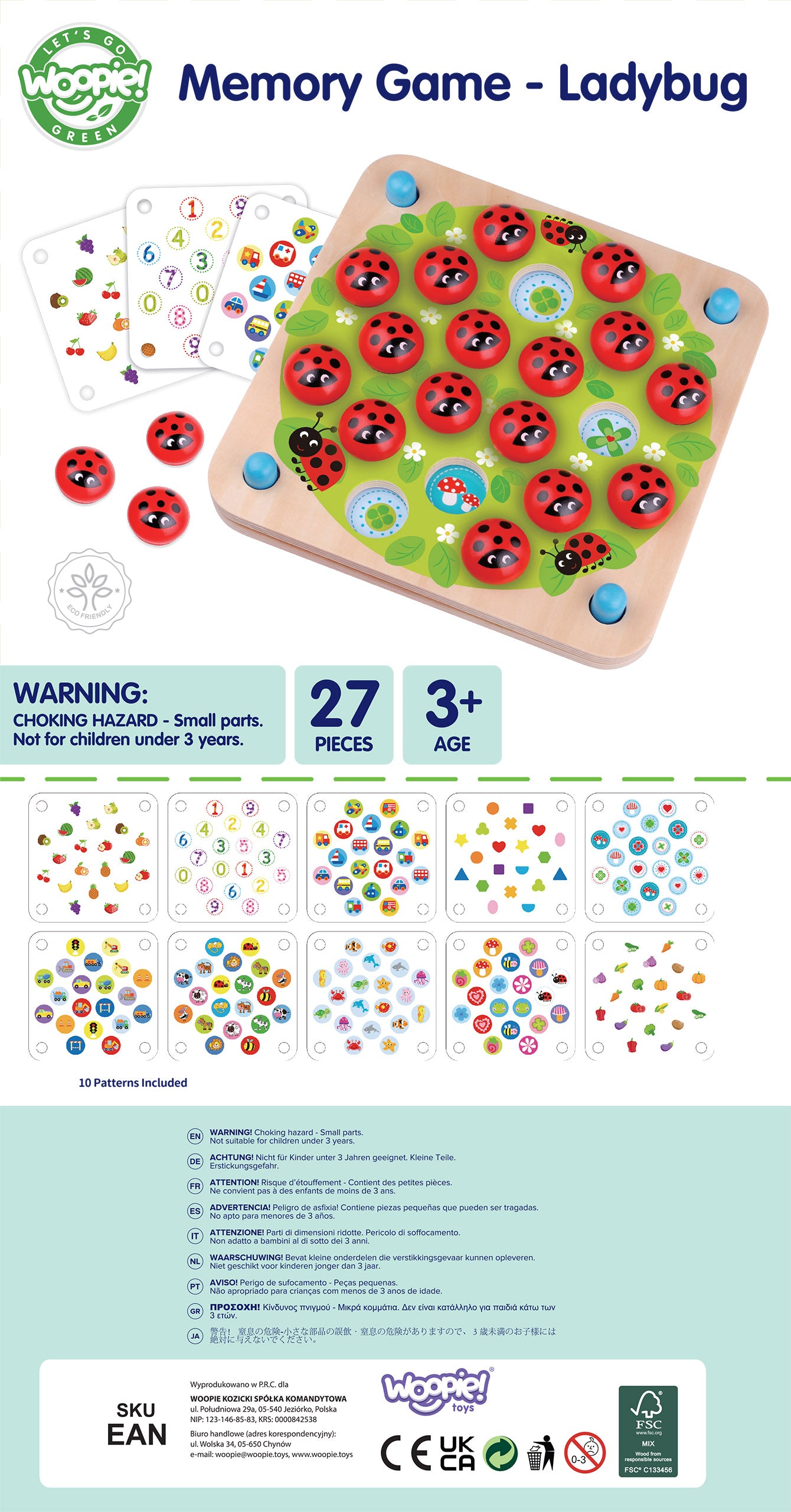 Znajdź Biedronkę | Drewniana Gra Pamięciowa Memory | WOOPIE GREEN