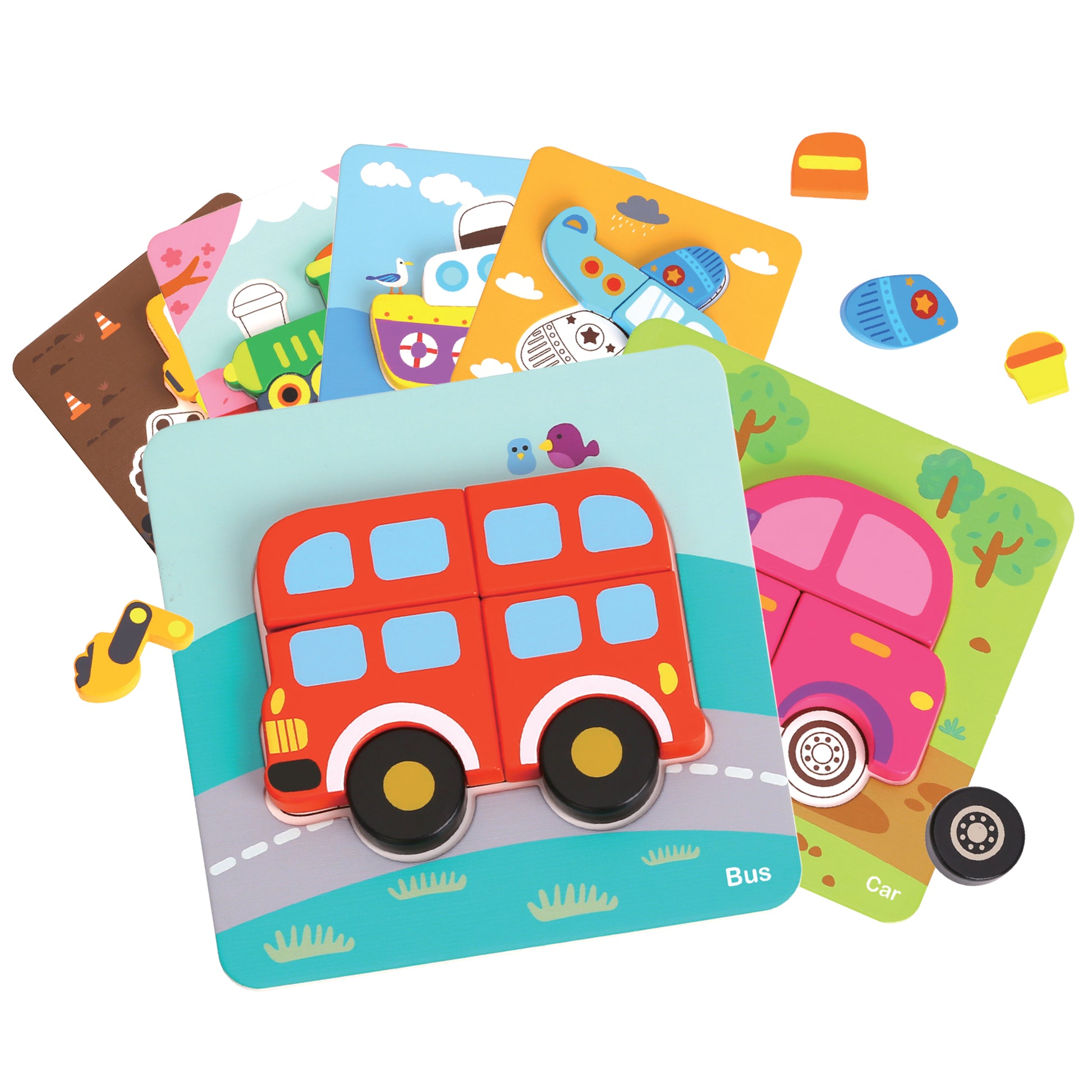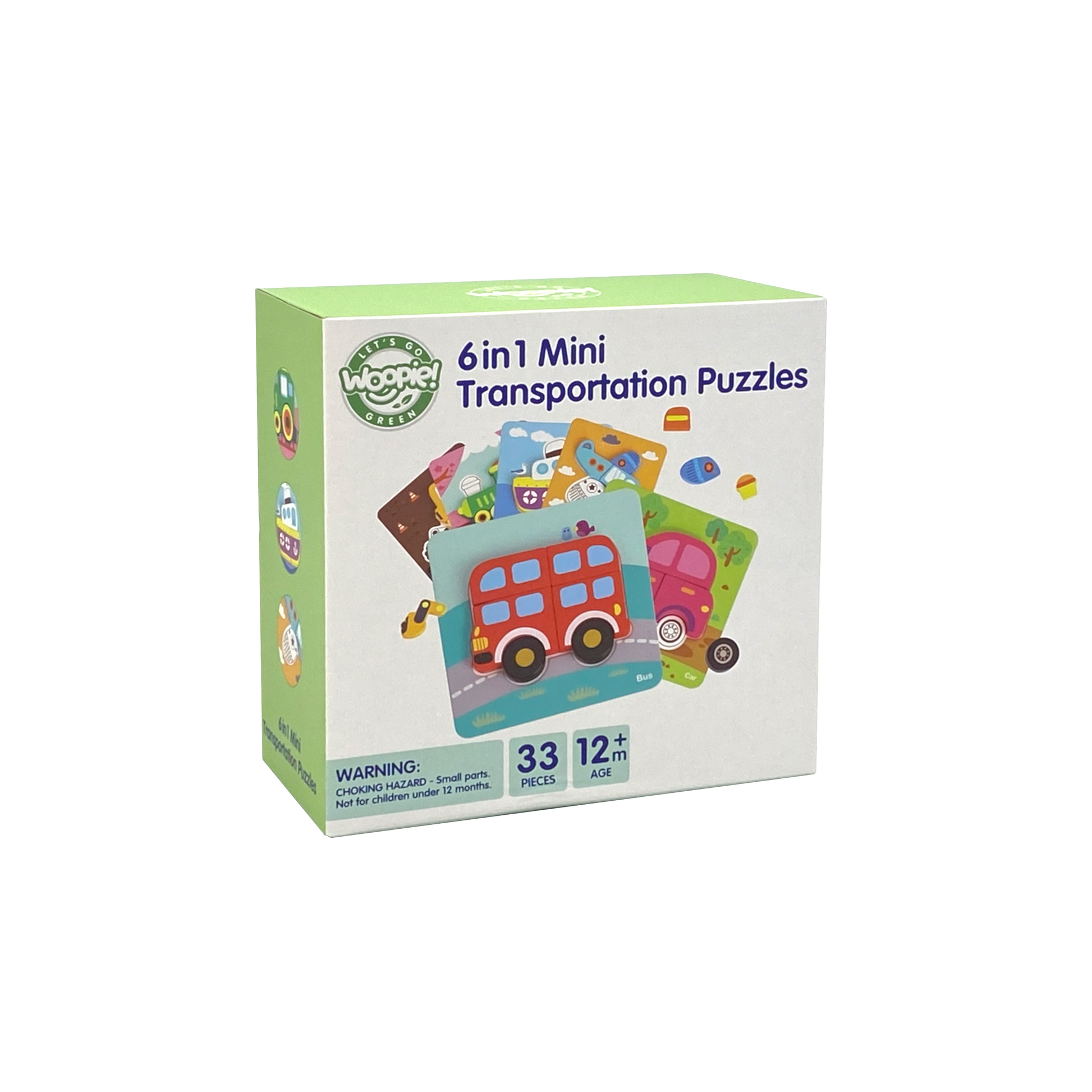 Zestaw składa się z 33 elementów, w tym 6 trwałych, kolorowych kart ze wzorami pojazdów oraz drewnianych klocków o różnych kształtach i kolorach. Zadaniem dzieci jest dopasowanie dużych, drewnianych elementów, układając je zgodnie ze wzorem, aby ukończyć kolorową układankę. Klocki wykonane są z naturalnego drewna, a marka WOOPIE dba o każdy szczegół, zapewniając 100% bezpieczeństwa.