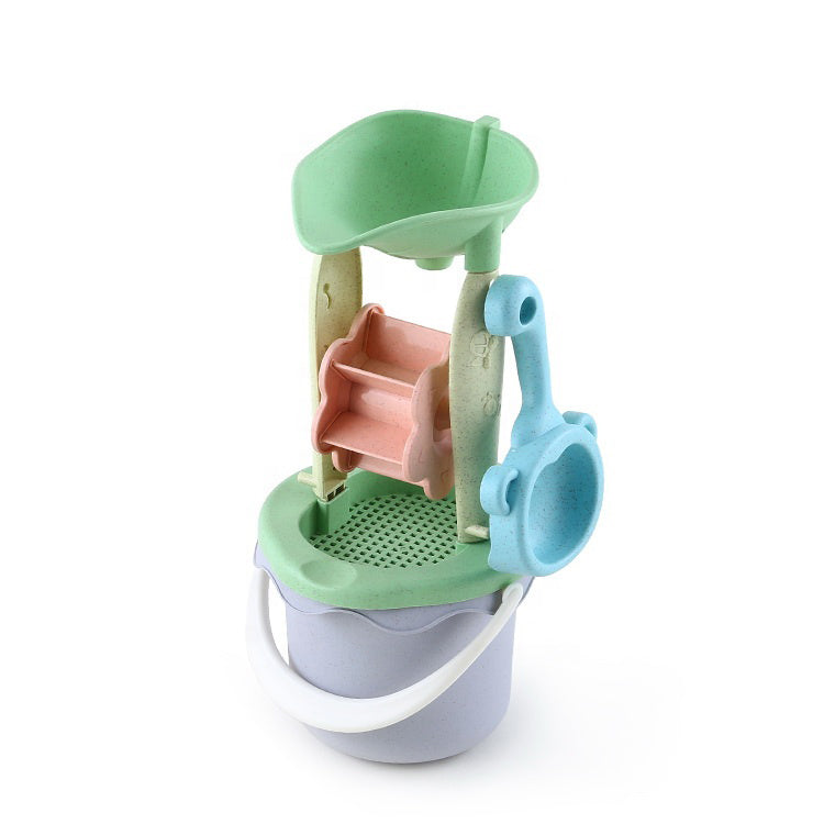 Zestaw do Piasku | Wiaderko Kołowrotek Konewka Foremki 9 el. BIO | WOOPIE GREEN