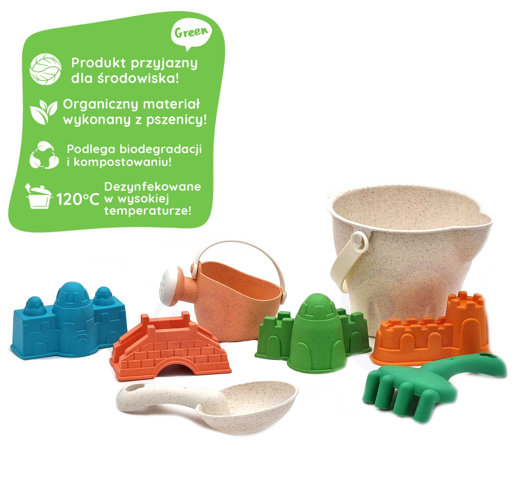 Zestaw do Piasku | Wiaderko Konewka Foremki 8 el. BIO Ekologiczny | WOOPIE GREEN