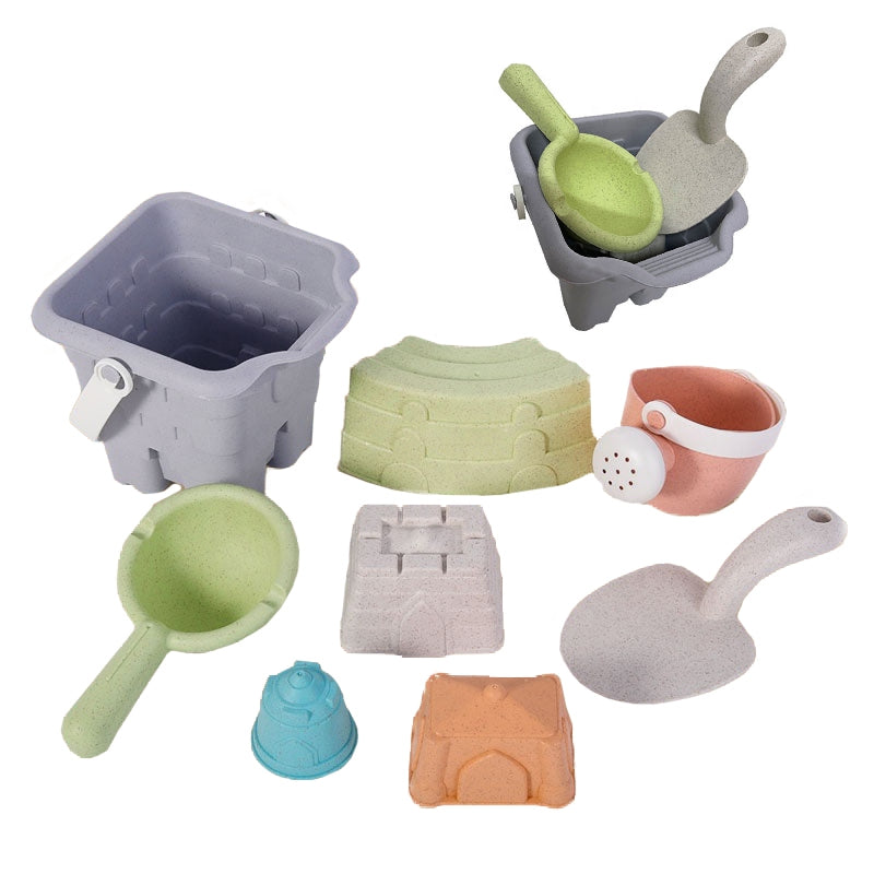 Zestaw do Piasku | Wiaderko Konewka Foremki Łopatki 8 el. BIO | WOOPIE GREEN