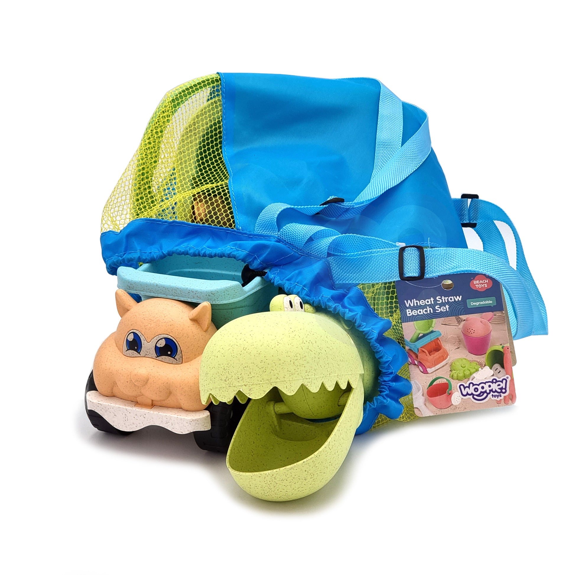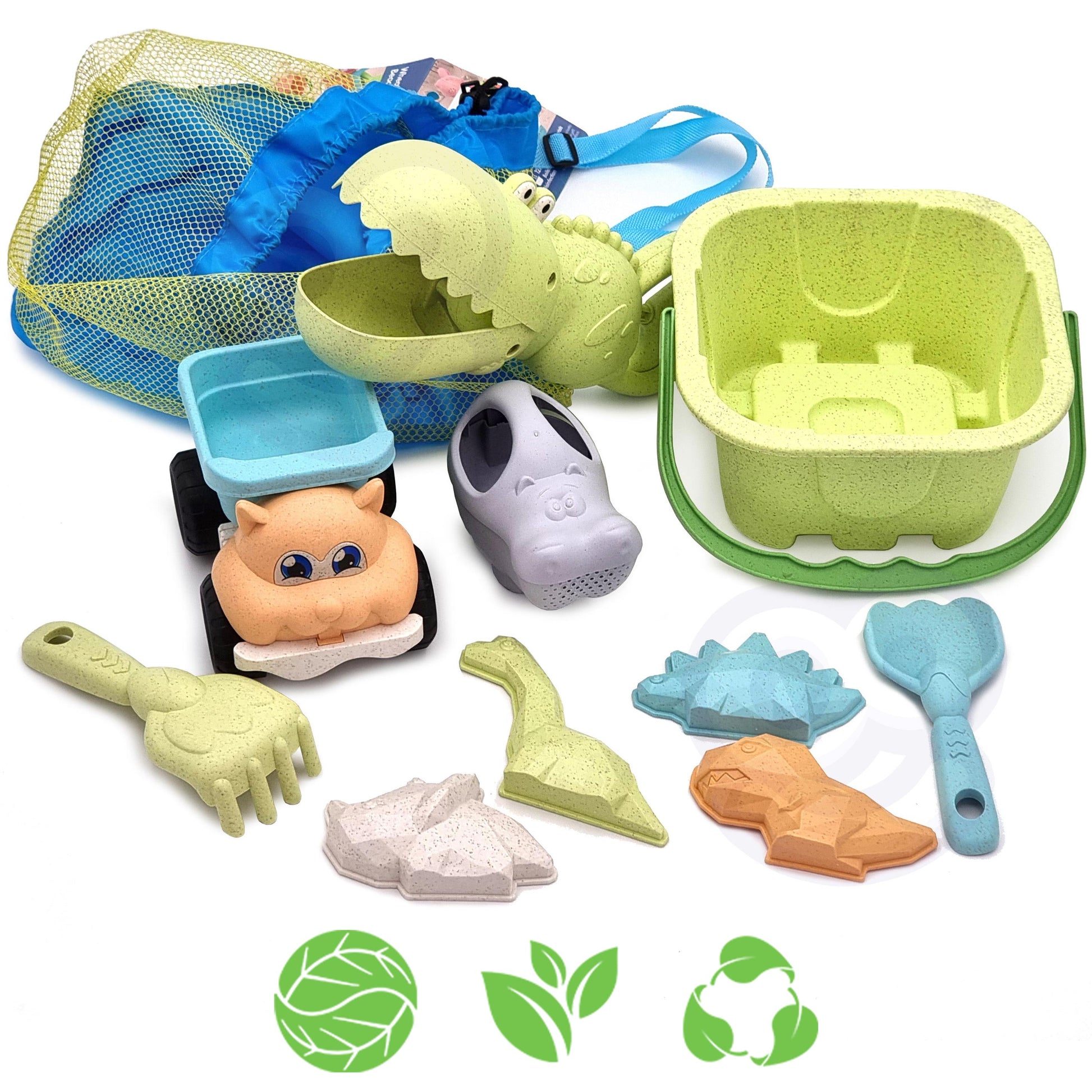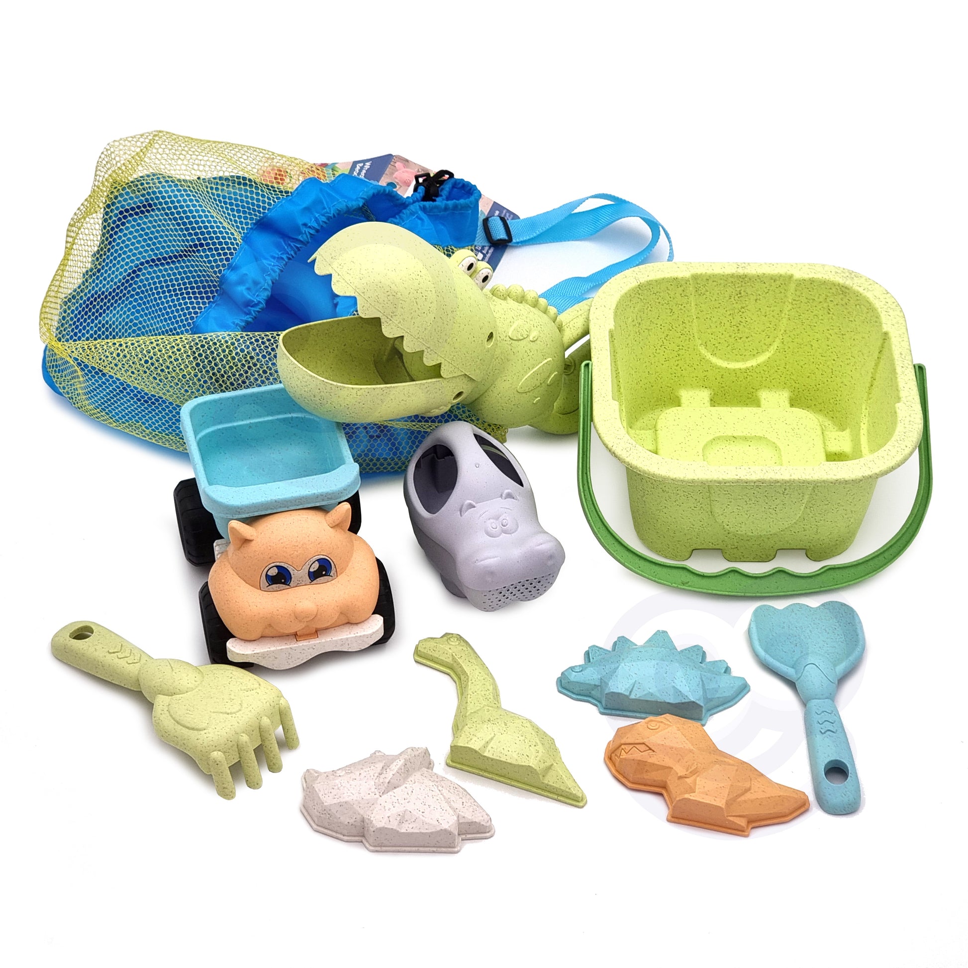 Zestaw do Piasku | Wiaderko Krokodyl Samochód 10 el. BIO W Plecaku | WOOPIE GREEN