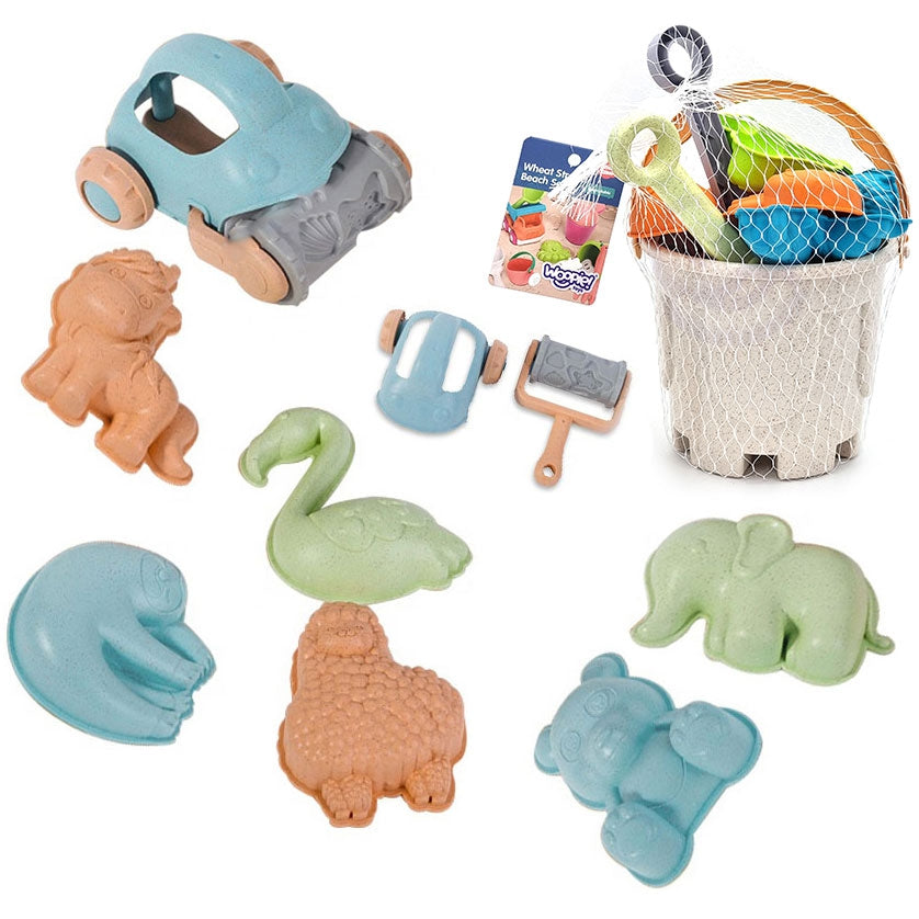 Zestaw do Piasku | Wiaderko Samochodzik 6 Foremek Łopatka 10 el. BIO | WOOPIE GREEN